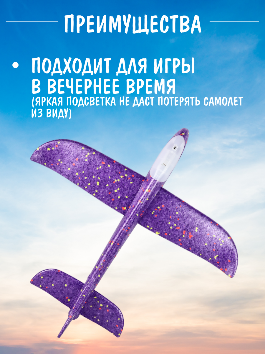 Отзывы на Планер-самолет метательный 48см, со светом переключения режима, из пенопласта