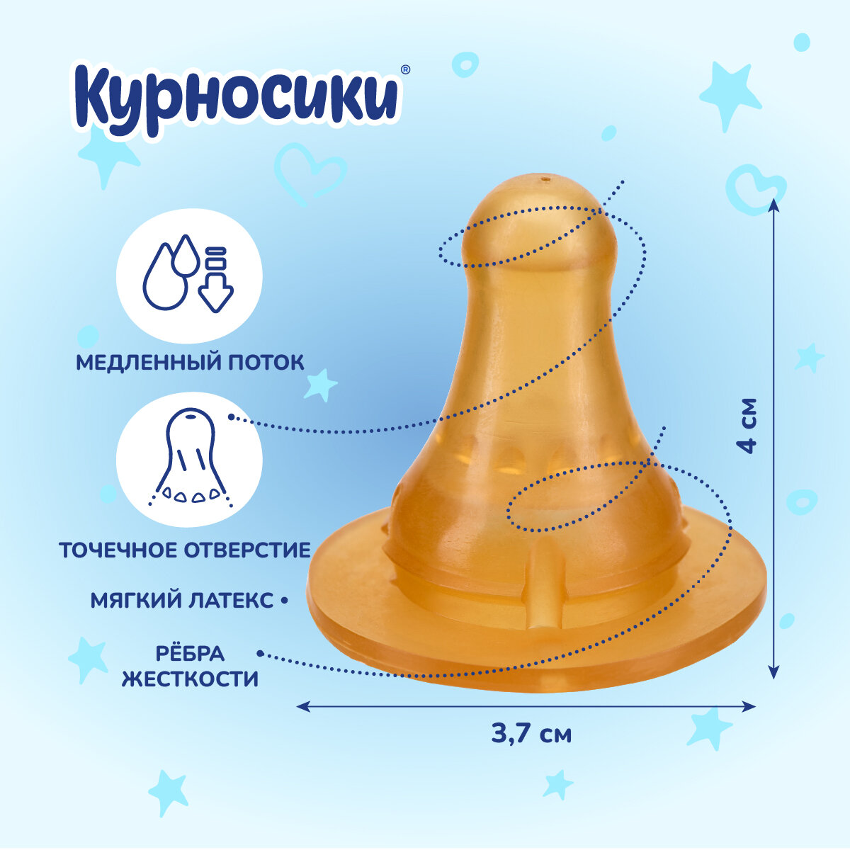 Бутылочка для кормления новорожденного Курносики с латексной соской, 0+ мес., 125 мл, синий