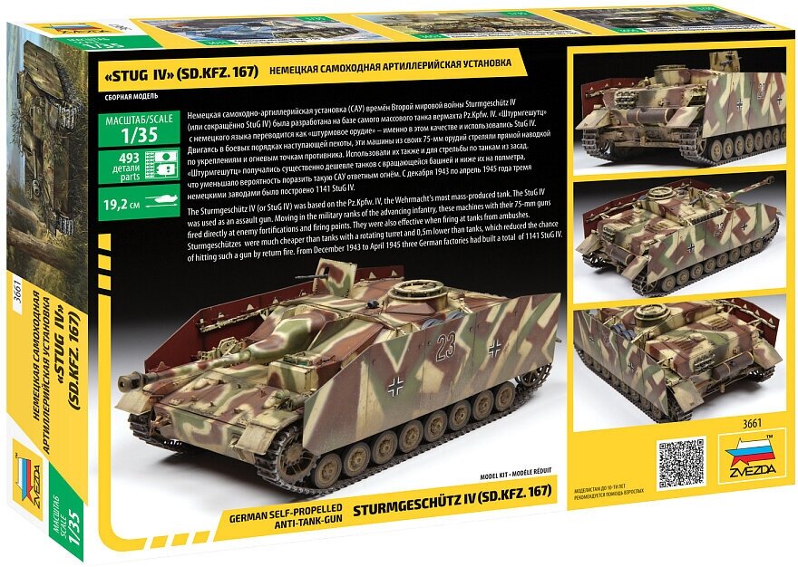 Сборная модель ZVEZDA 1/35 Немецкая самоходная артиллерийская установка StuG IV (SD.KFZ. 167) 3661 информация: