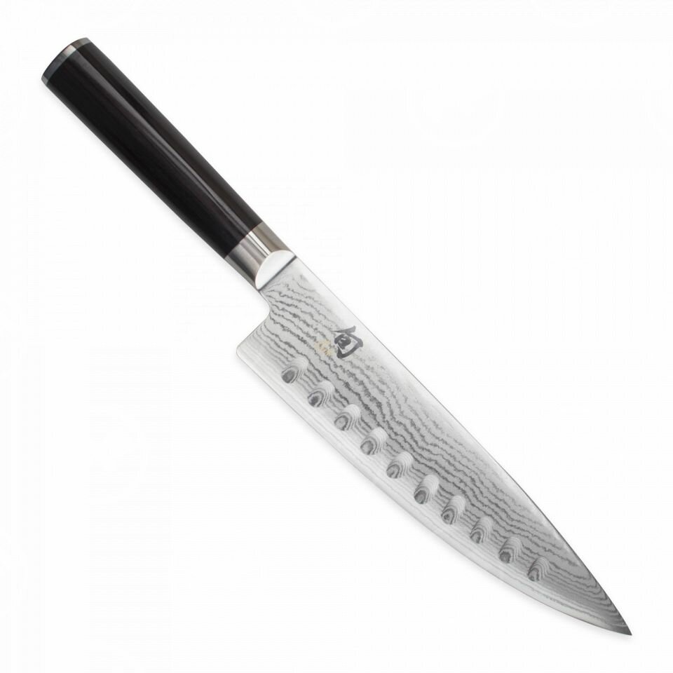 Нож кухонный поварской гюйто из дамасской стали с углублениями на лезвии, 21.6 см, рукоять из стабилизированной древесины, черный, серия Shun Classic, Kai, KAI-DM-0719
