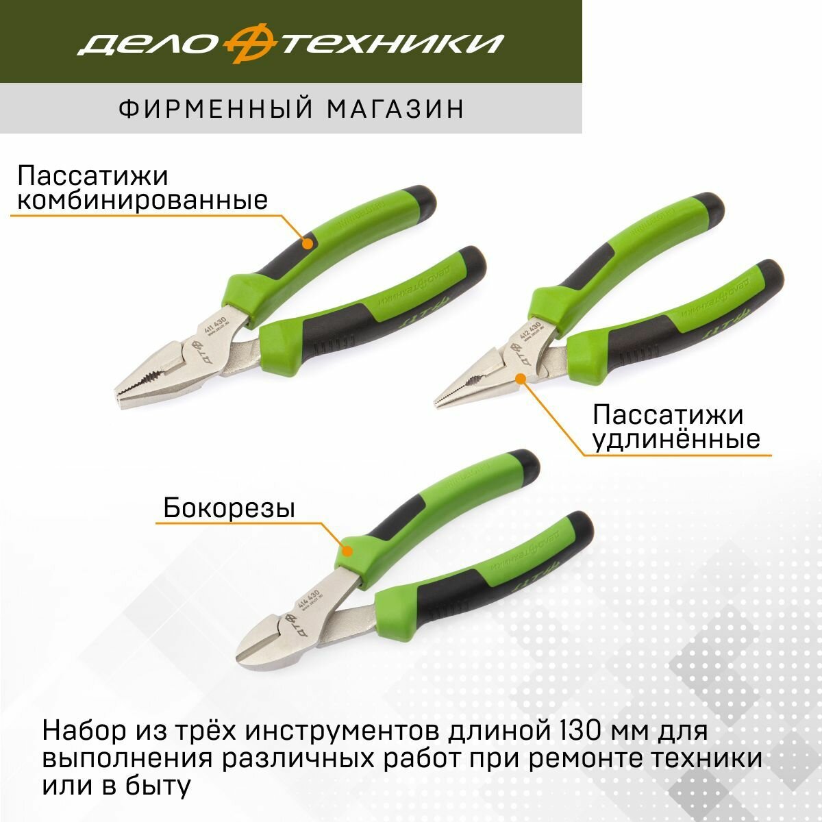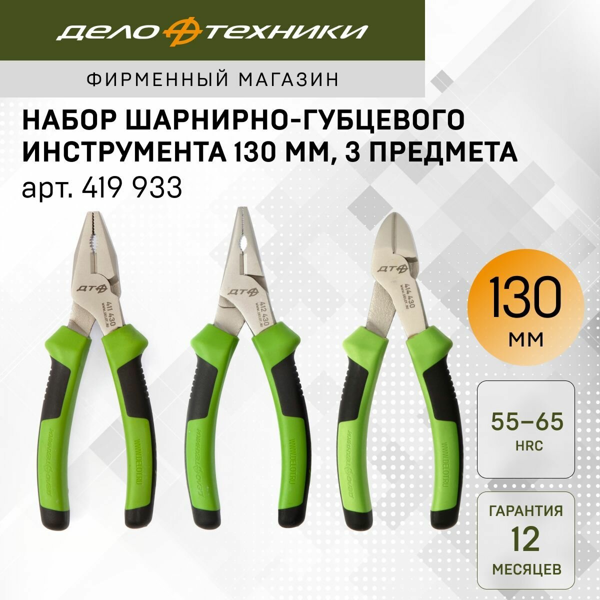 Набор шарнирно-губцевого инструмента 130 мм, 3 предмета, Дело Техники, 419933 информация: