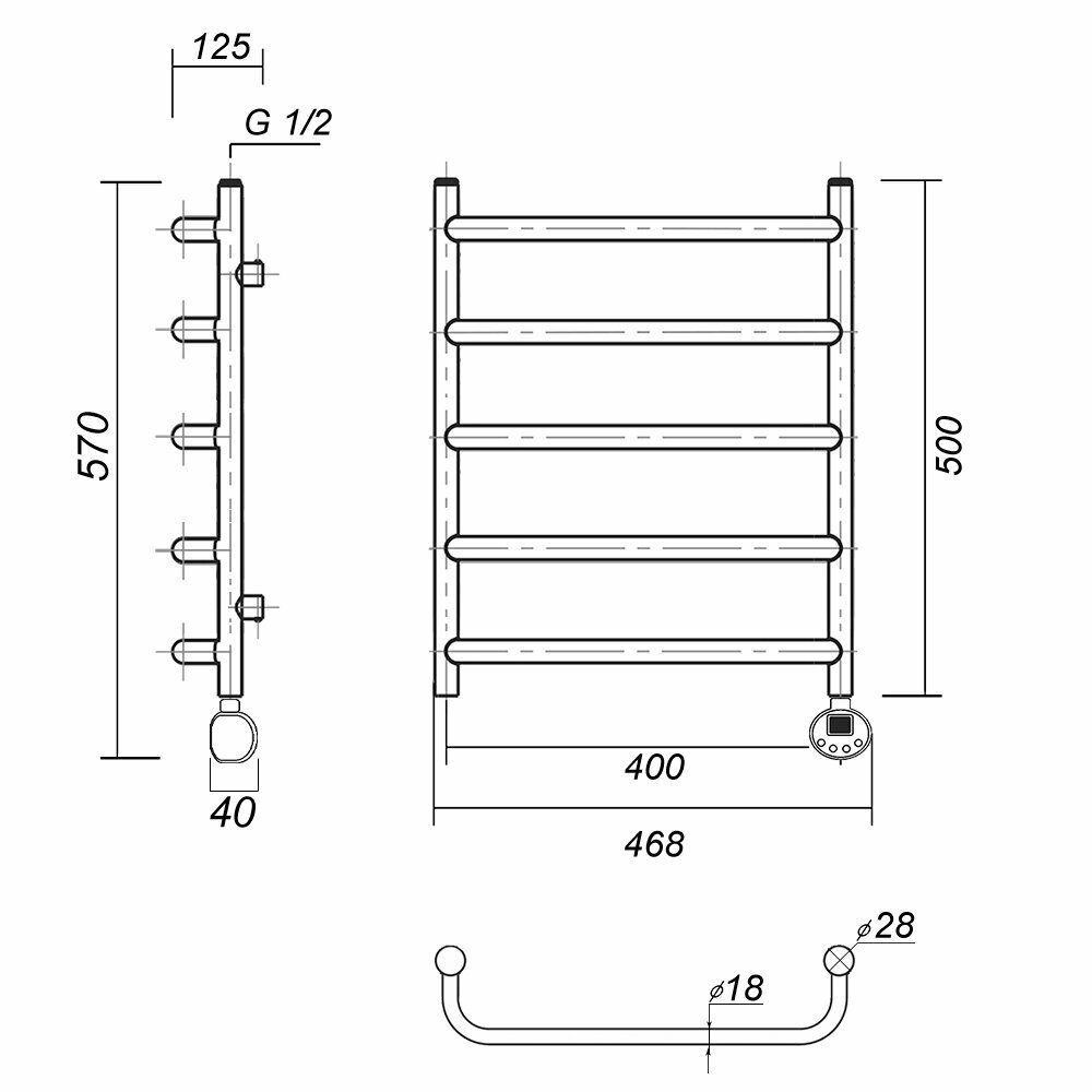 | Дополнительная информация | Полотенцесушитель с ТЭНом в сборе 1 шт., Стойка крепления 4 шт., Кран Маевского - 1 шт. Заглушка - 1 шт. Паспорт/инструкция |