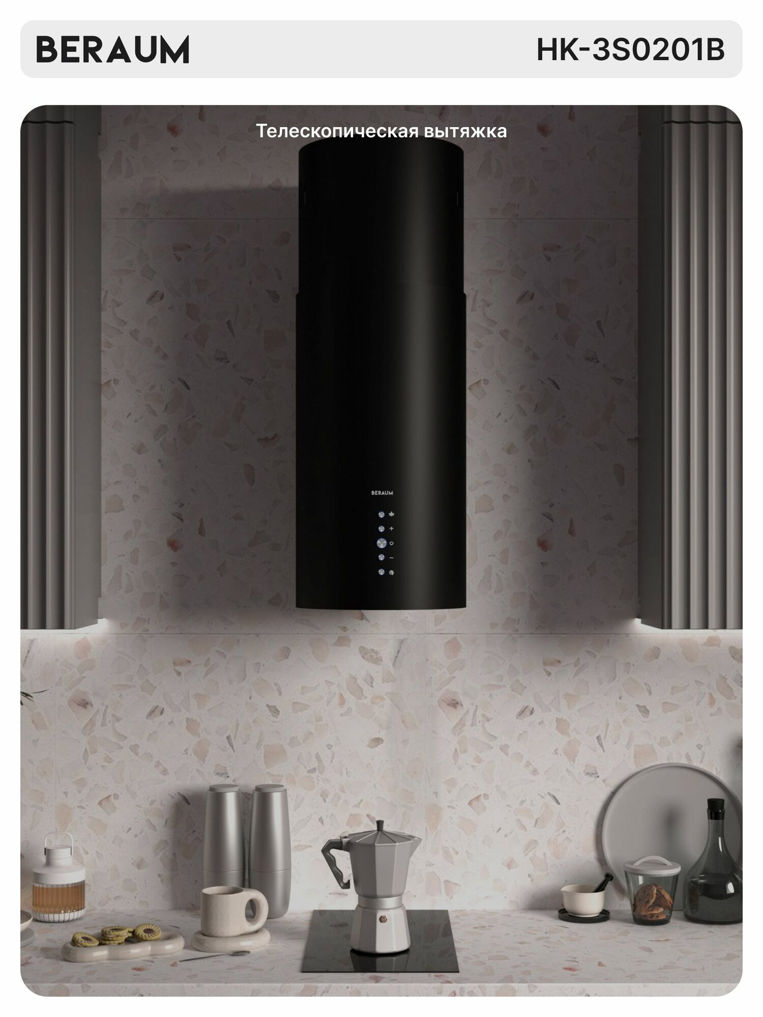 Вытяжка пристенная цилиндрическая Beraum HK-3S0201B, телескопическая информация: