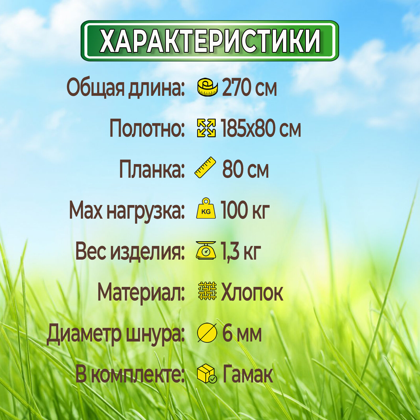 Гамак с креплением (стропы с петлями + s), плетёный из хлопка, 185х80 см информация: