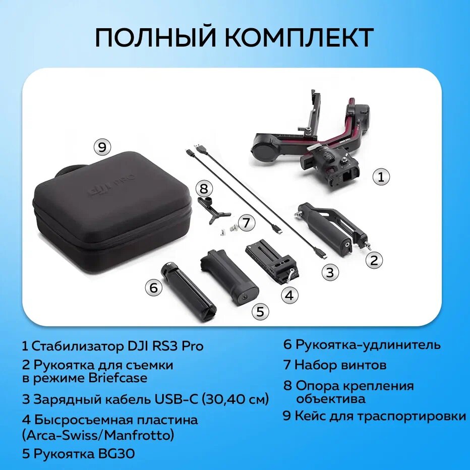 Стабилизатор DJI RS3 Pro standard, 12 ч автономной работы, для экшн-камер информация: