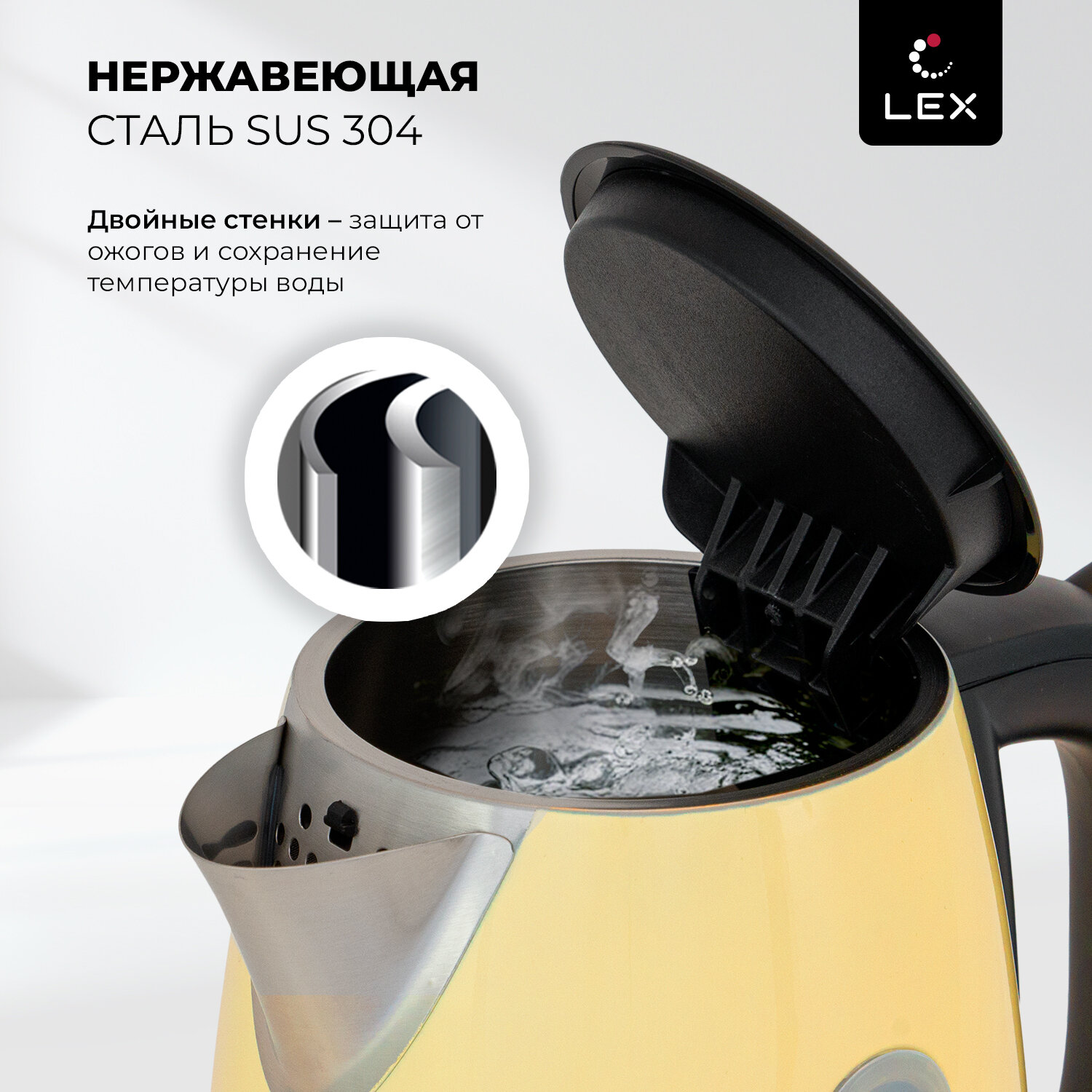 Чайник электрический металлический LEX LX 30017-3, 2200Вт, 1,7л, Strix контроллер, блокировка включения без воды, защита от перегрева. информация: