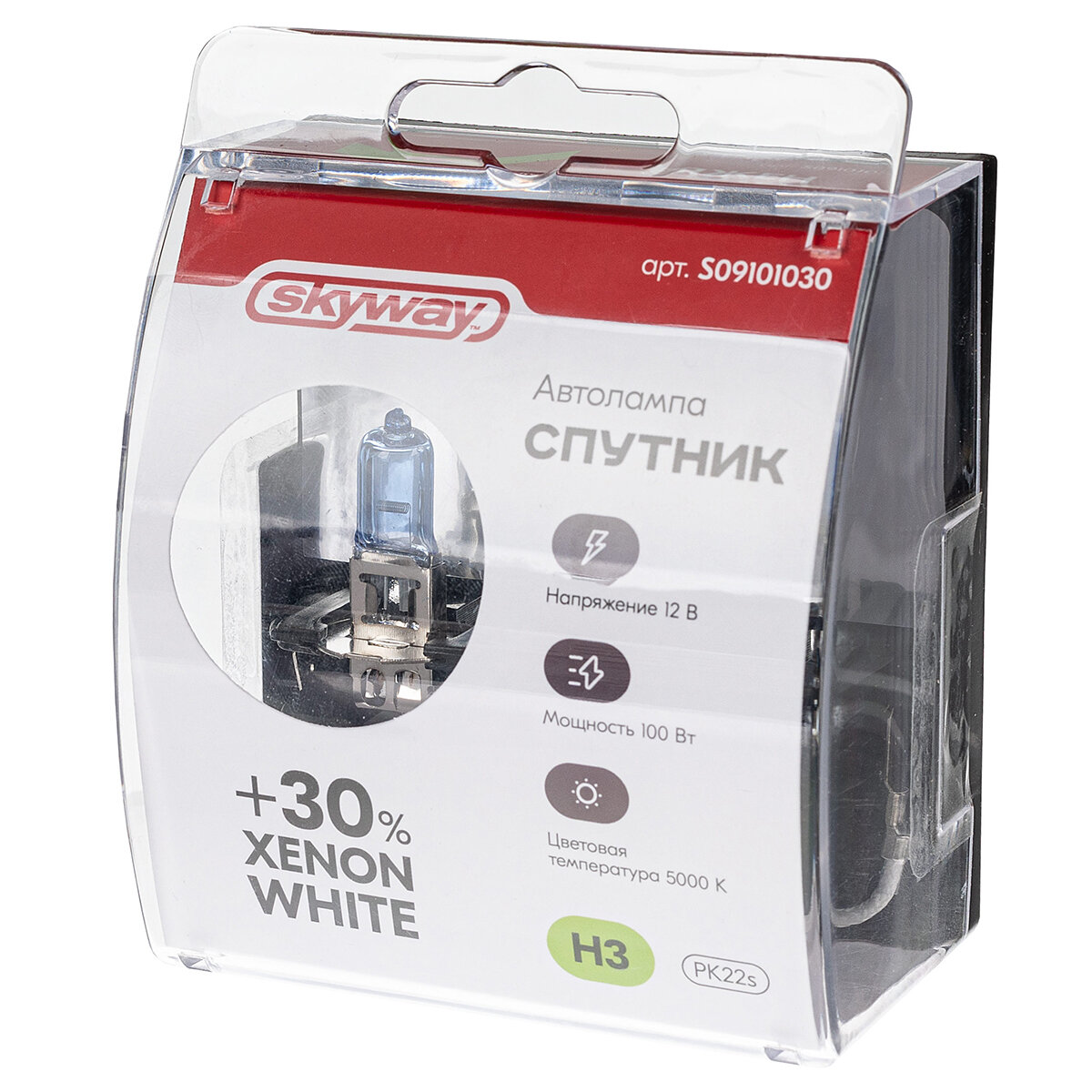 SKYWAY S09101030 Лампа H3 12V 100W 1-конт XENON WHITE+30 1000Лм 4600К спутник 2 шт; SKYWAY