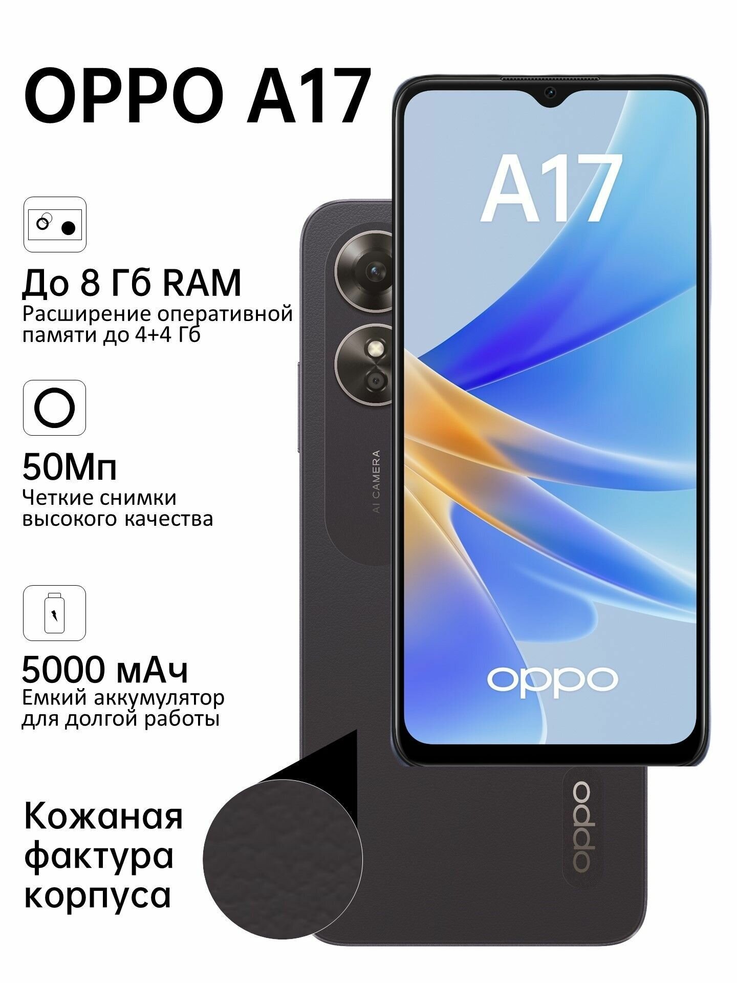 Смартфон OPPO A17 4/64 ГБ Global для РФ, Dual nano SIM, черный информация: