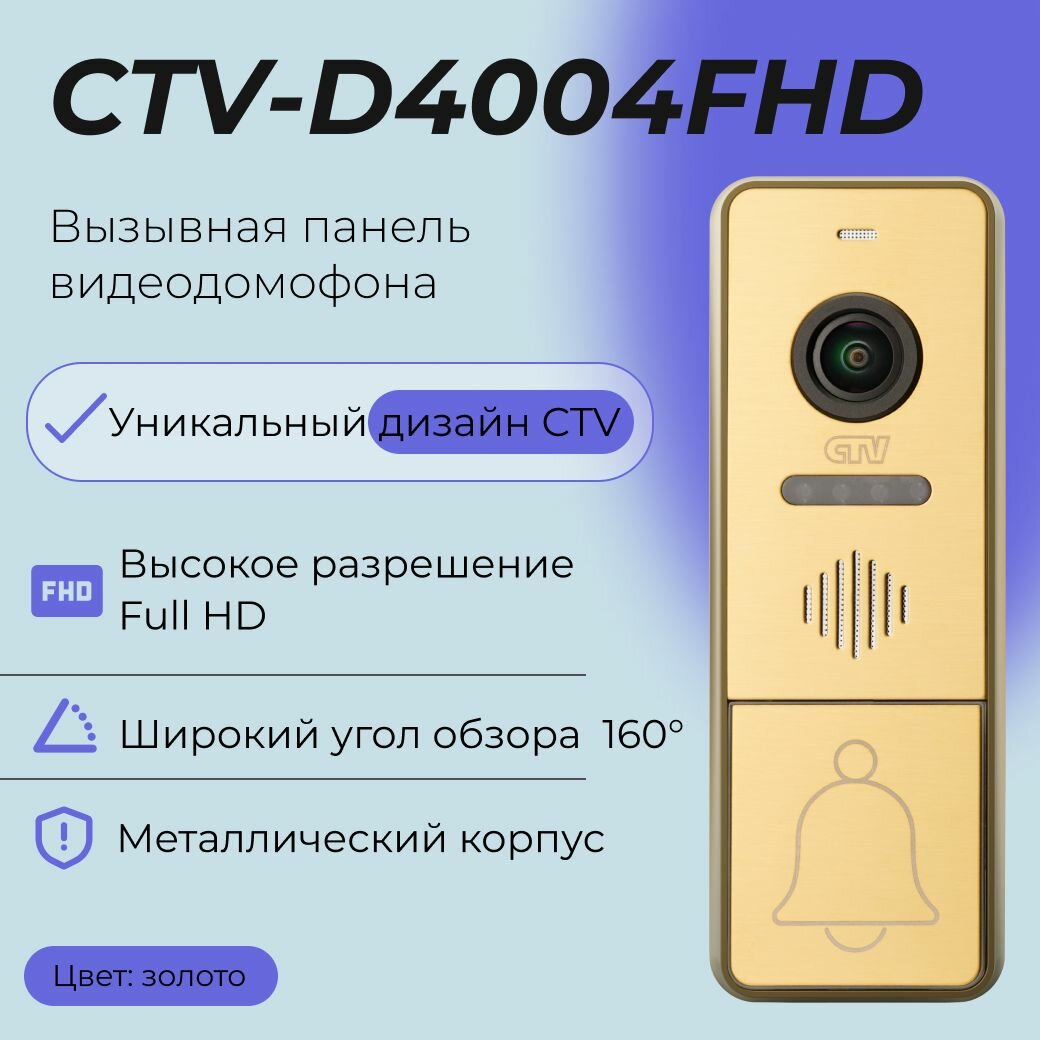 Мы выбрали 10 лучших цен на CTV-D4004FHD (Золото) Вызывная панель видеодомофона, Видеокамера 2Mp FULL HD, обзор 160 градусов, ИК-подсветка, Антивандальный корпус, -30.+50С. Перед тем как купить CTV-D4004FHD (Золото) Вызывная панель видеодомофона, Видеокамера 2Mp FULL HD, обзор 160 градусов, ИК-подсветка, Антивандальный корпус, -30.+50С посмотрите найденные предложения из Яндекс Маркета и других сайтов на основе XML фидов.