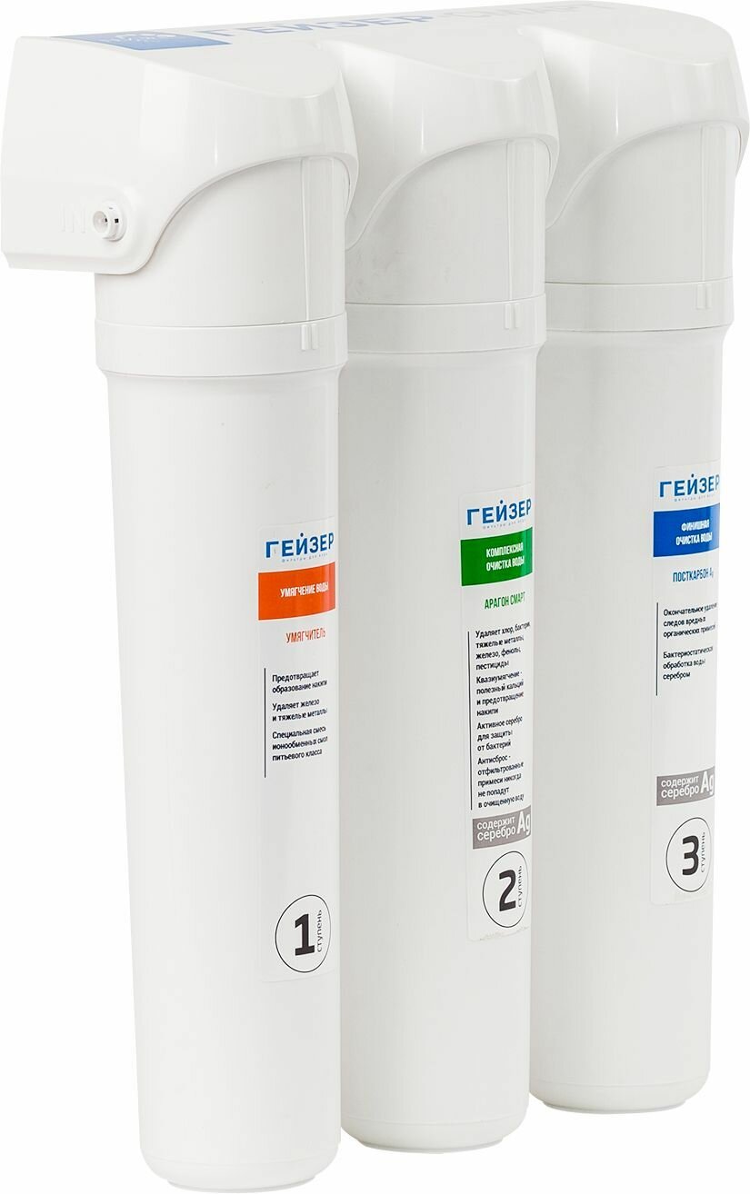 Комплект картриджей c механической фильтрацией, умягчением Гейзер для жесткой воды 3 ступени информация: