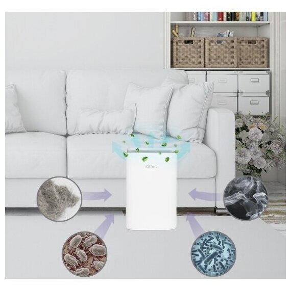 Очиститель и увлажнитель Kitfort KT-2825, белый, 25м2, 180м3/ч, 3 скорости информация: