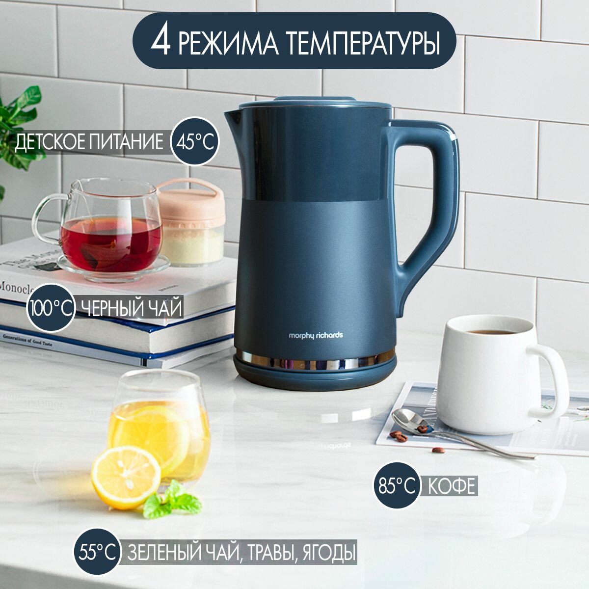 Электрочайник Morphy Richards MR6070 1.5L Stainless Steel Constant Temperature, 4 Gear Temperature Adjustment Real-time Temperature Display Intelligent Insulation Double-layer Anti-scalding, blue 5 934 ₽