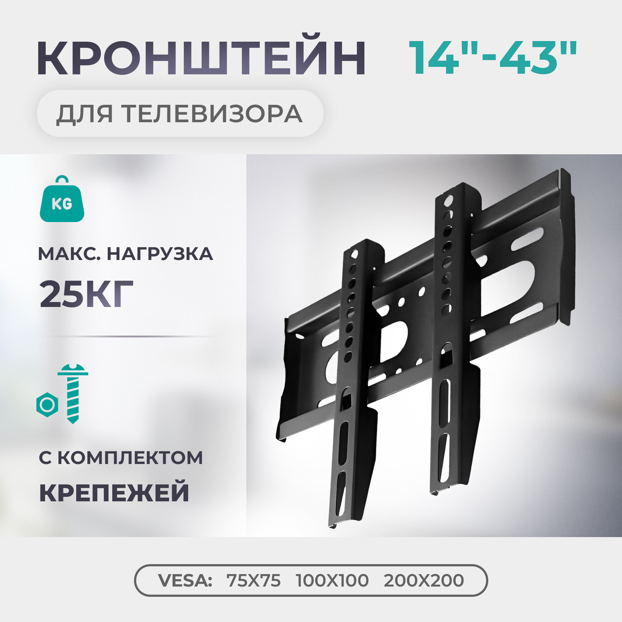 Кронштейн для телевизора 14"-43" 25кг фиксированный 640 ₽