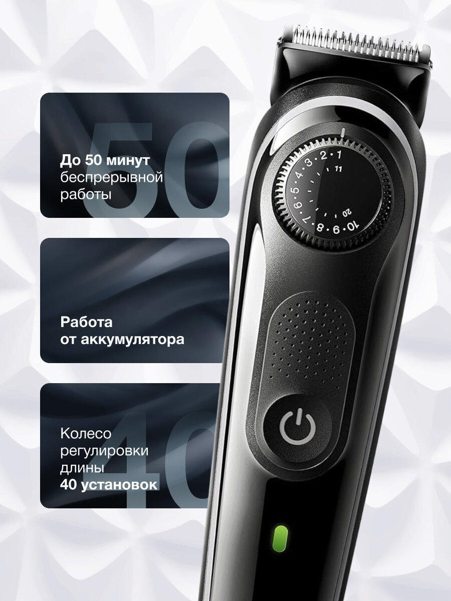 Триммер универсальный Braun MGK5440, 5 насадок, 13 настроек длины, светодиодный индикатор заряда, черный 8 690 ₽
