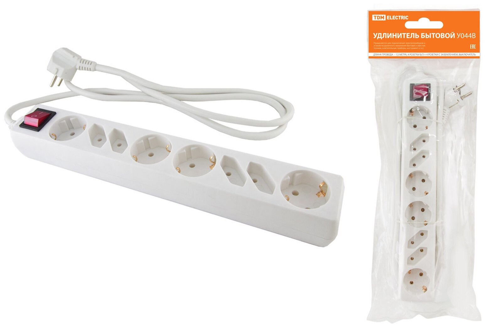 10 цен на Удлинитель 8-мест 1,5м ПВС 3*1,5 белый выкл TDM