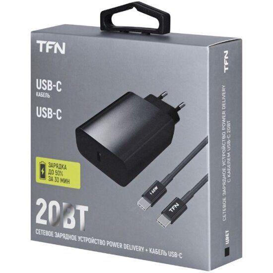 10 цен на Сетевое зарядное устройство Tfn -WC36, USB-C PD 20W, с кабелем USB-C, черный
