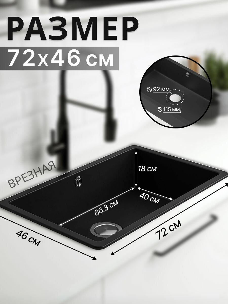 Отзывы на Врезная мойка 72x46 см одинарная черный кварцевый композит IKEA KILSVIKEN килсвикен