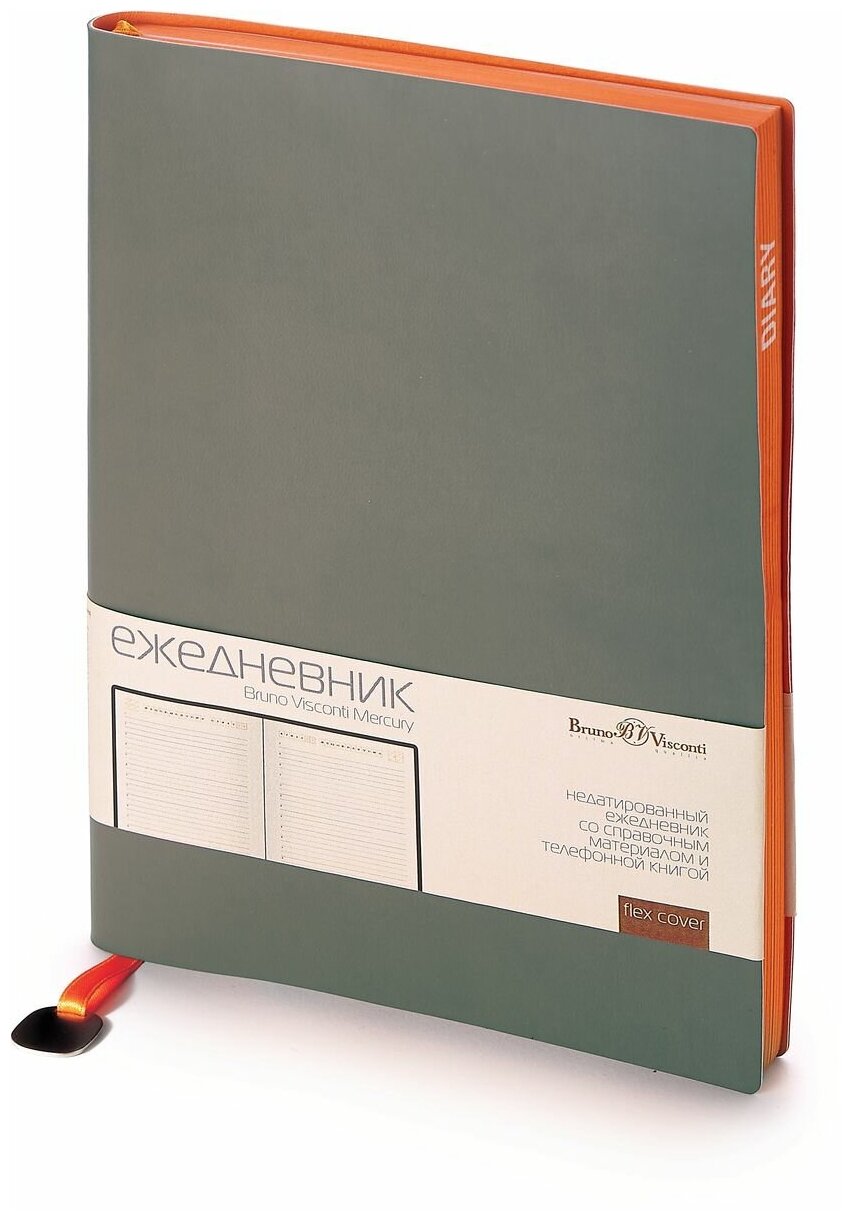 Ежедневник недатированный А5+ искусственная кожа « Bruno Visconti » 136л Mercury Серый, линия, белый офсет 70г/м2, печать в 2 краски, ляссе, скруглен информация: