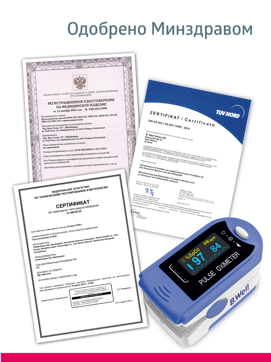 Пульсоксиметр на палец B.Well MED-320 для измерения уровня кислорода в крови и пульса информация: