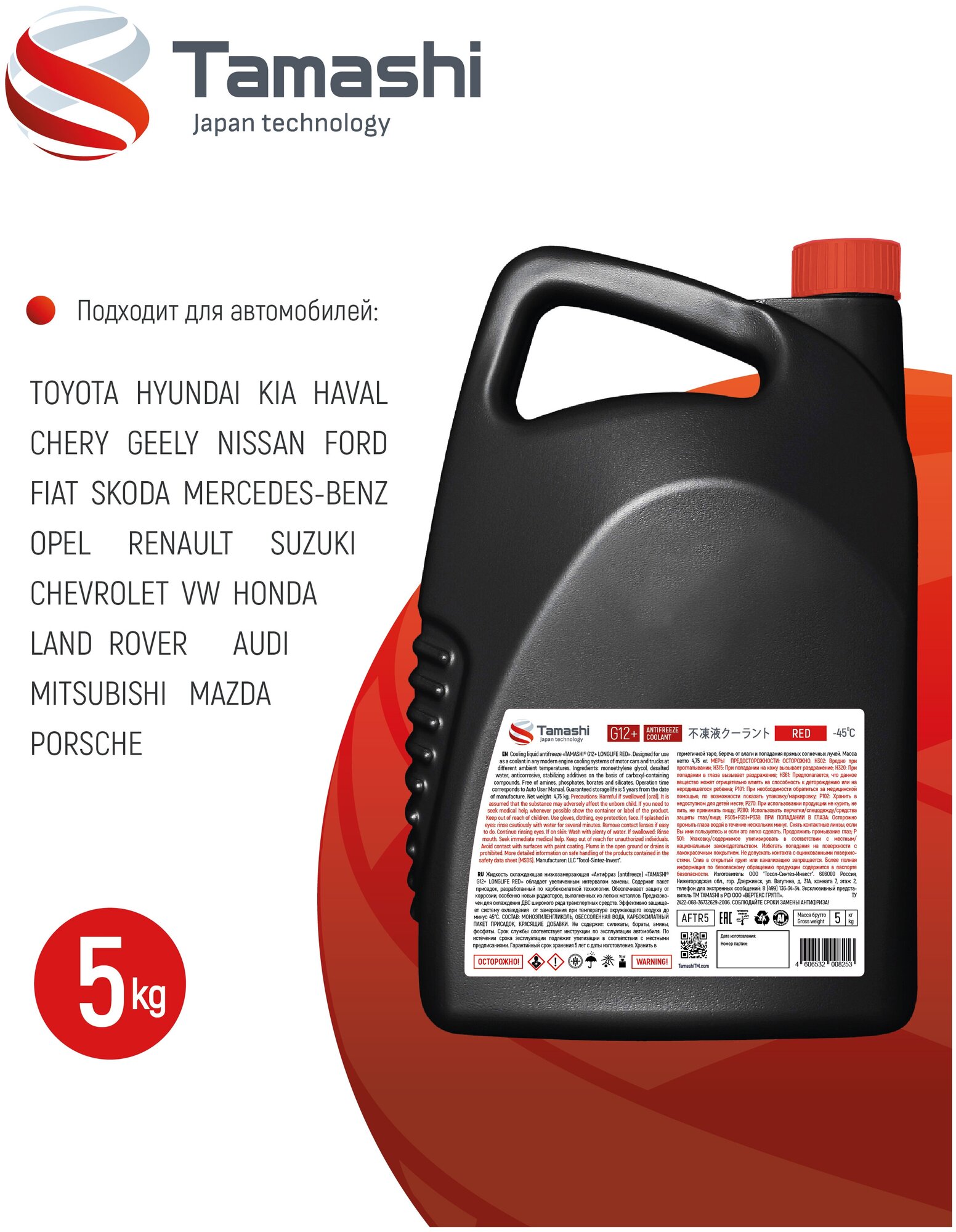 TAMASHI AFTR5 Антифриз TAMASHI G12+ LONGLIFE RED, 5кг, красный, готовый, до -45°C информация: