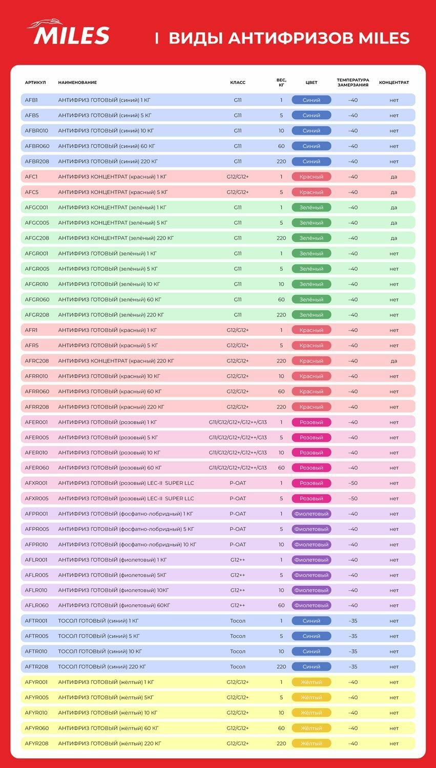 Мы выбрали 10 лучших цен на Концентрат антифриза Miles AFC1. Перед тем как купить Концентрат антифриза Miles AFC1 посмотрите найденные предложения из Яндекс Маркета и других сайтов на основе XML фидов.
