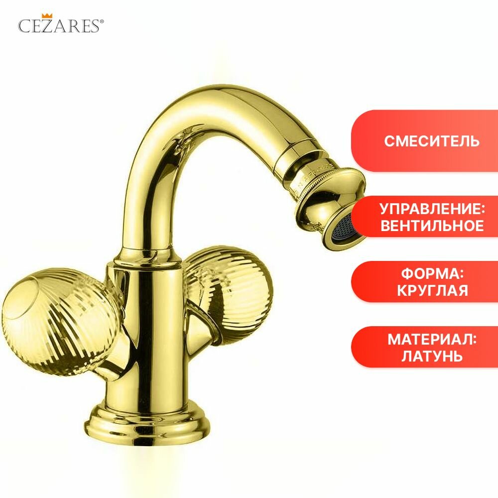 Смеситель для биде CEZARES APHRODITE-BS2-03/24-M, золото 24 карат