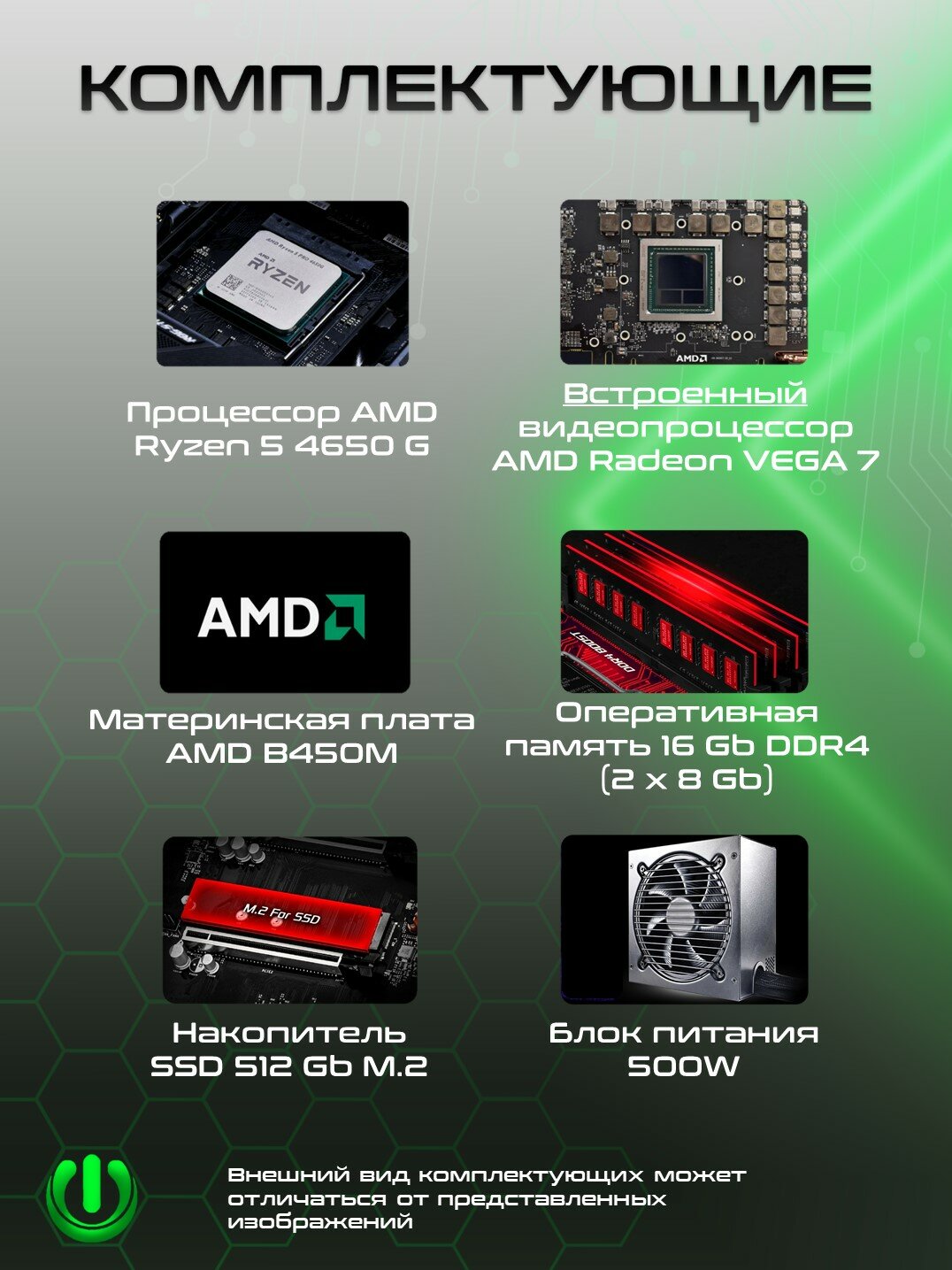 Игровой компьютер PREON Delta (AMD5 4650G, B450M,16Gb, SSD 512Gb, AMD VEGA7,500W, Win10 PRO) информация: