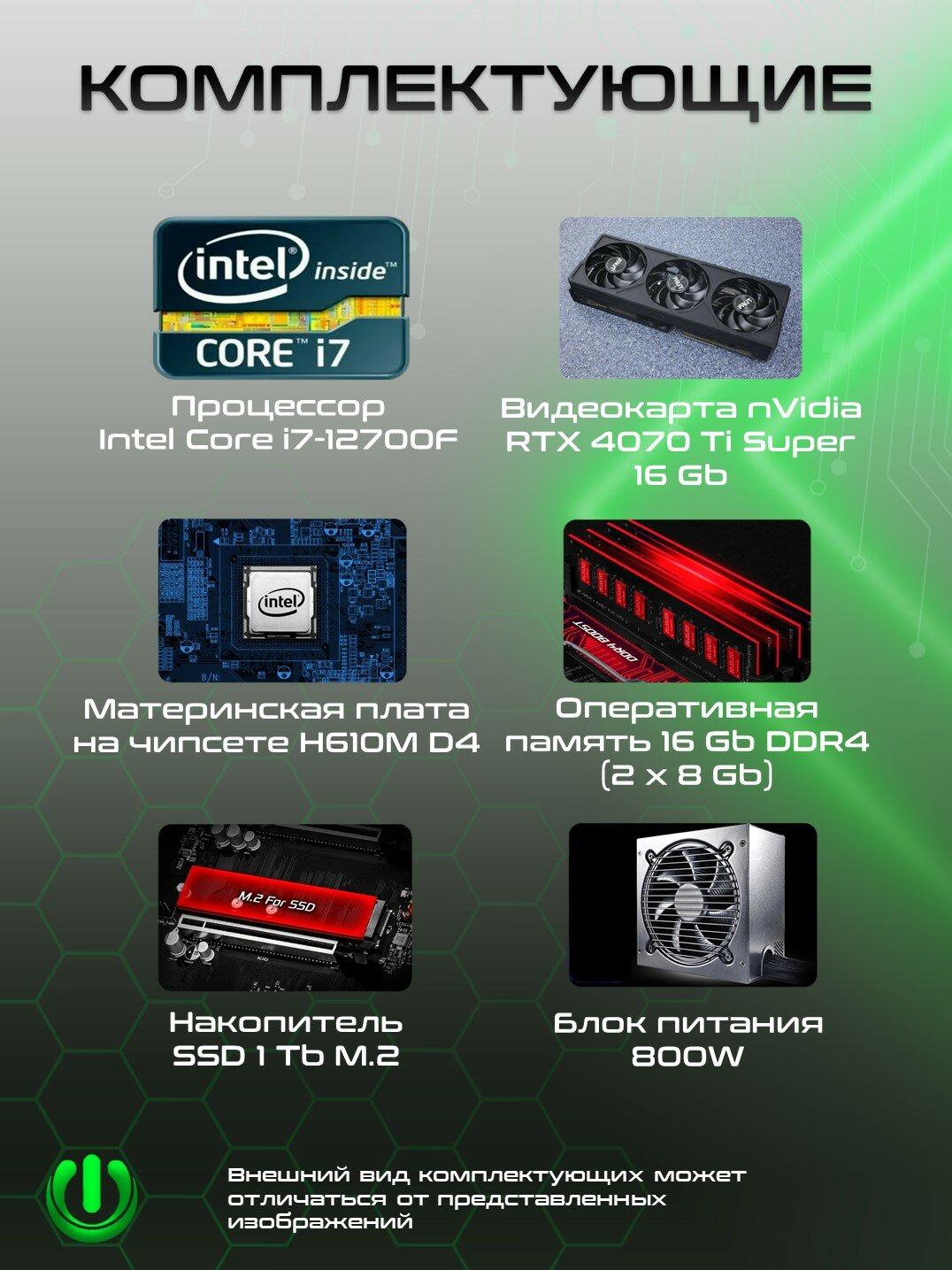 Игровой компьютер PREON Titan (i7-12700F, H610M D4,16Gb, SSD 1Tb, RTX4070Ti Sup,800W, Win10 PRO) информация: