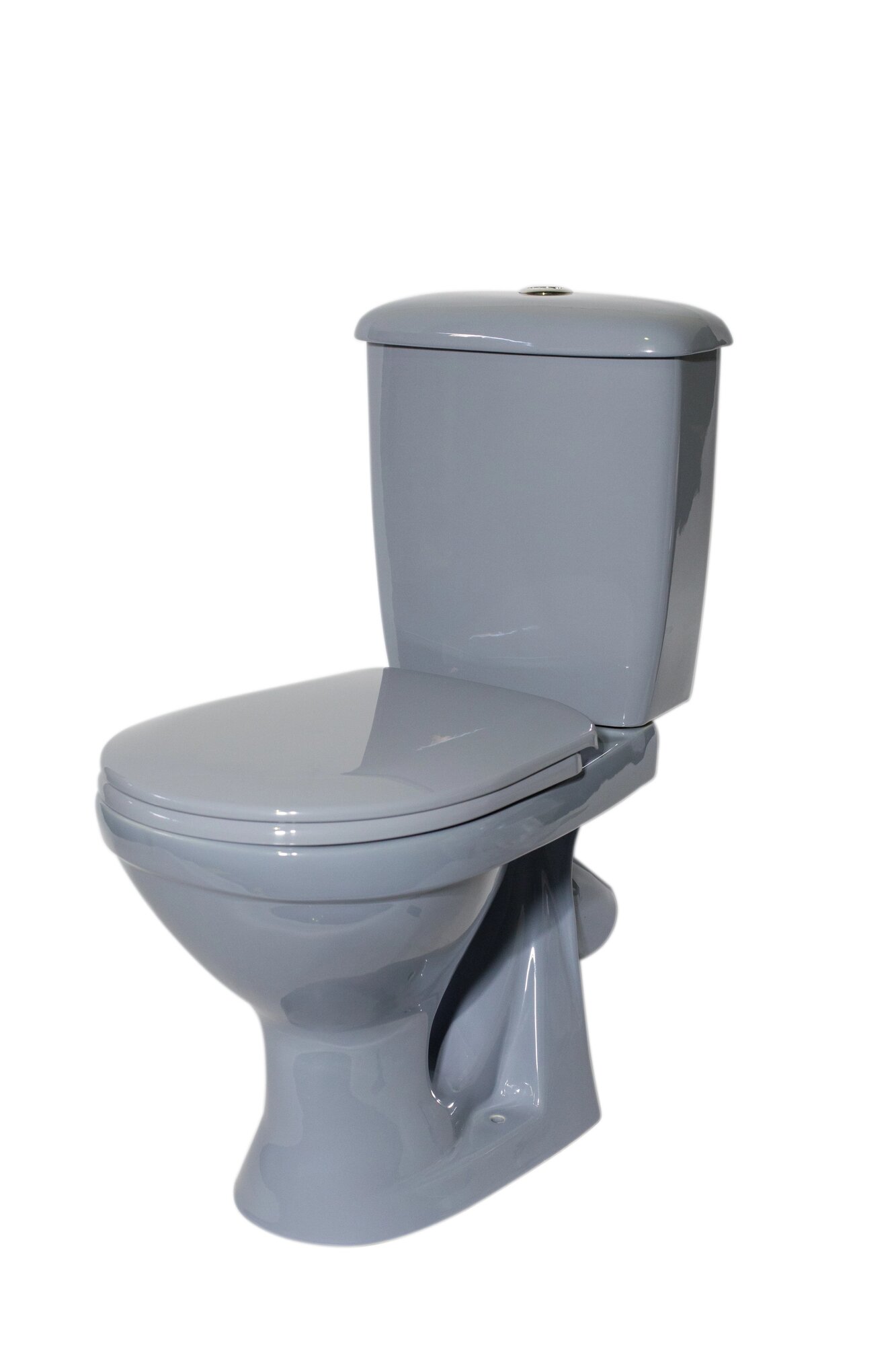 Унитаз компакт, Суперкомпакт, с бачком,напольный, серый, косой выпуск.