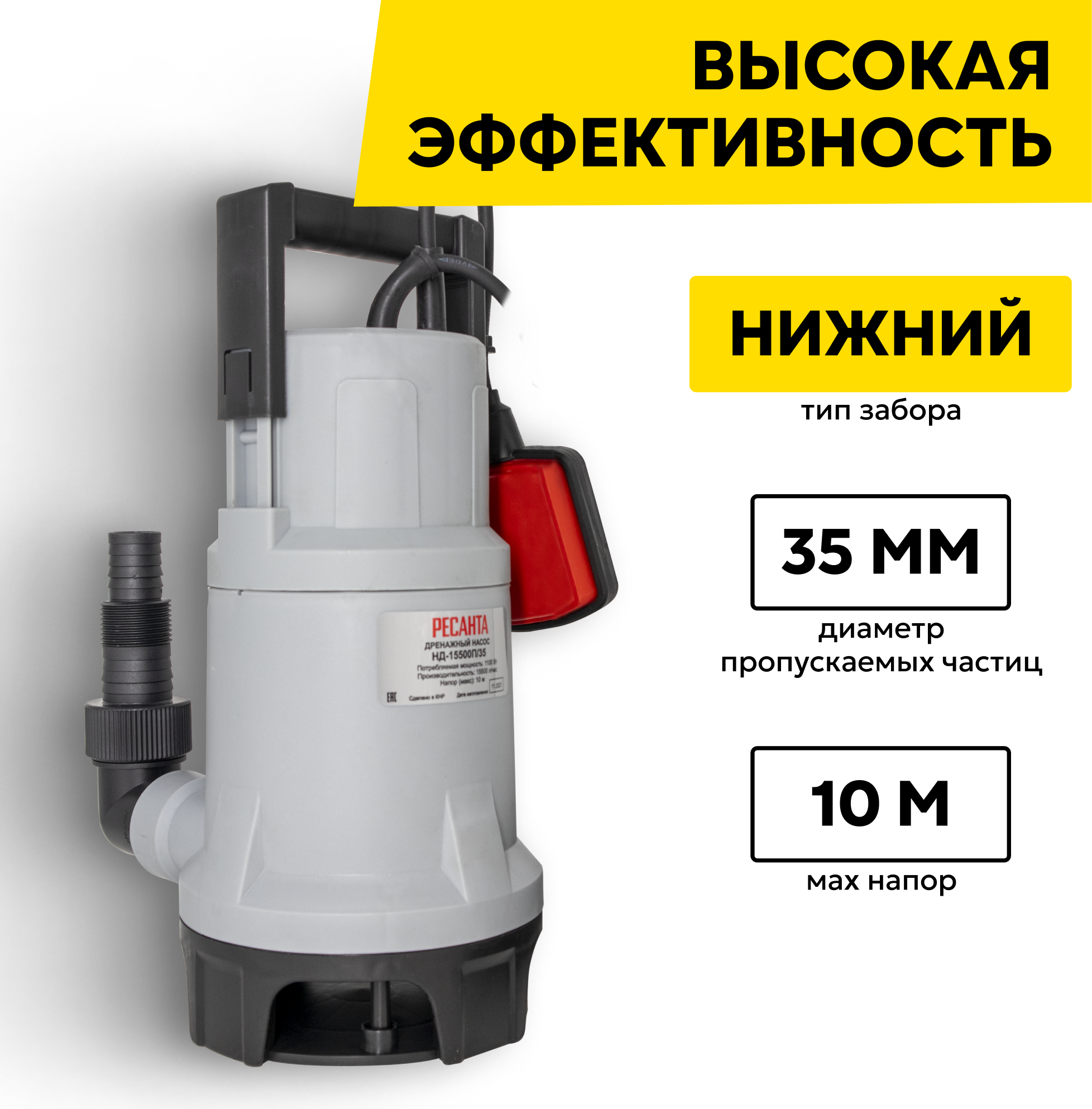 Отзывы на Дренажный насос Ресанта НД-15500П/35, 1100 Вт, макс. напор – 10 м, 15500 л/час, для грязной воды