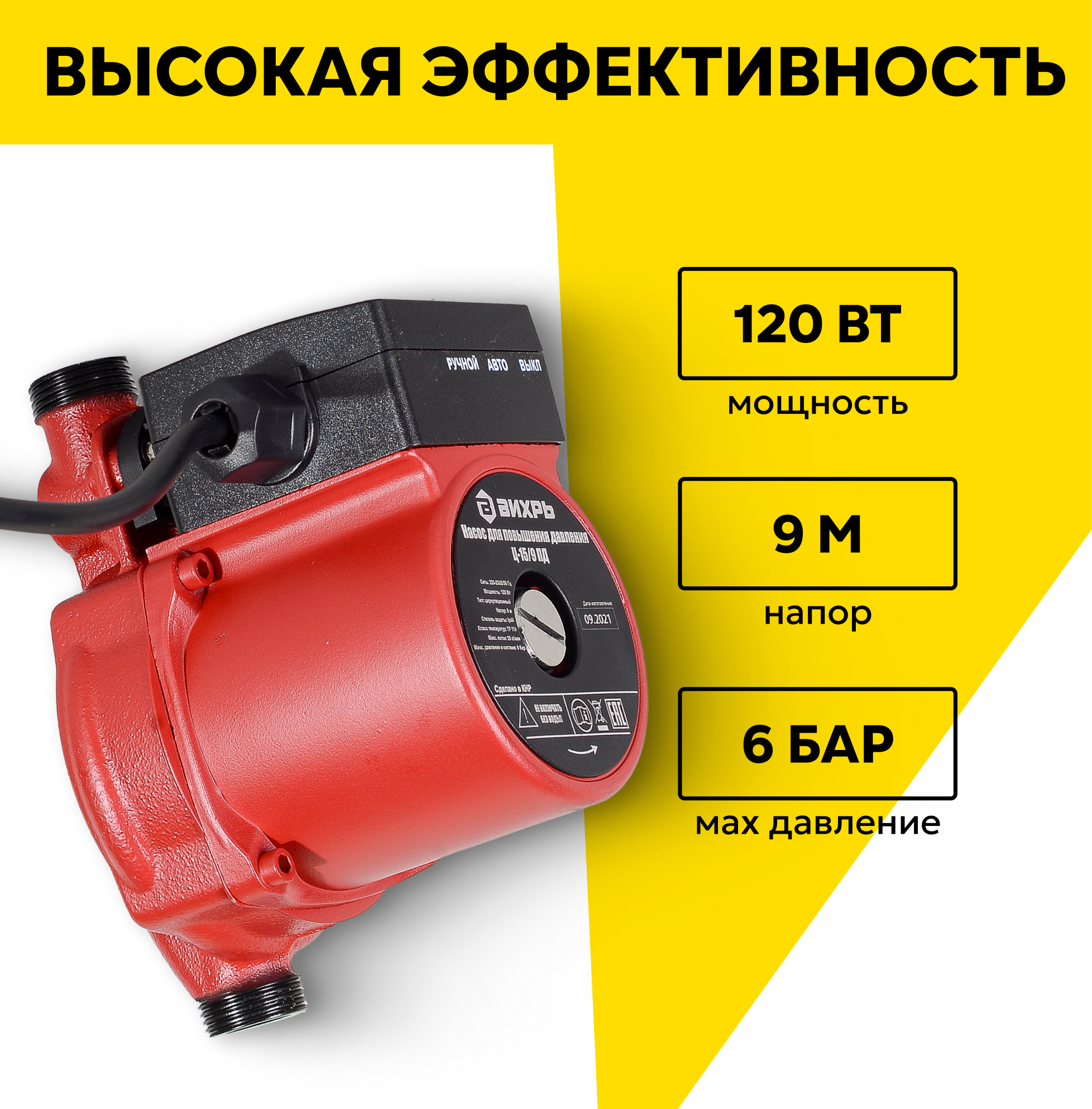 Насос циркуляционный Вихрь Ц-15/9 ПД, поверхностный, чугунный, 120Вт информация: