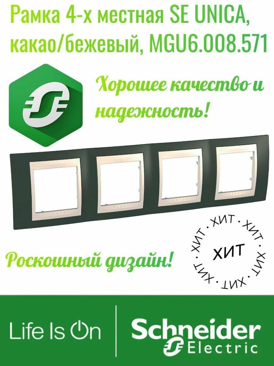 Отзывы на Рамка 4-х местная Schneider Electric Unica Хамелеон, какао/бежевый, MGU6.008.571