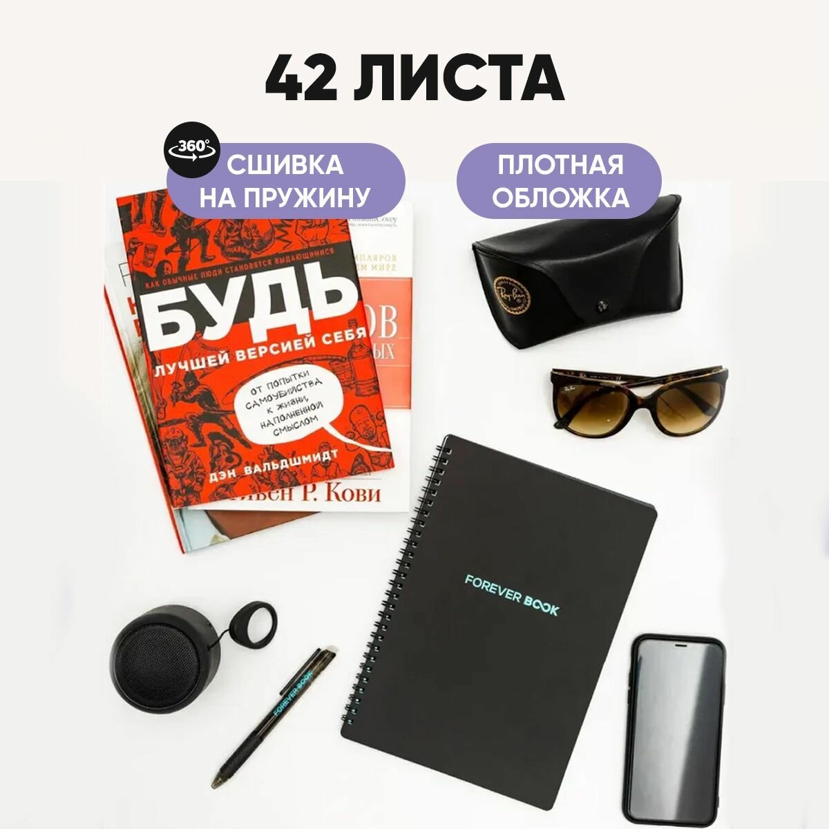 Многоразовый вечный блокнот для записей на кольцах с ручкой / Скетчбук творческий черный