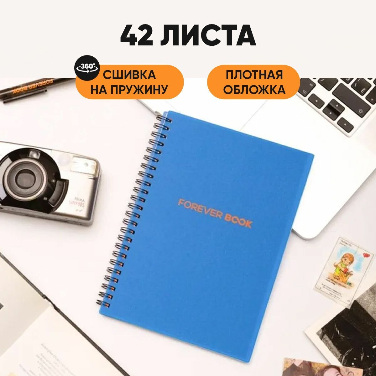 Многоразовый вечный блокнот для записей на кольцах с ручкой / Скетчбук творческий синий 1 590 ₽