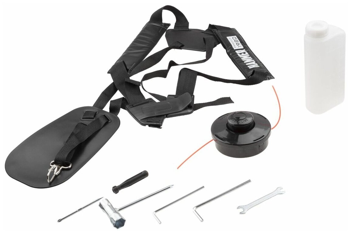 | Подробная комплектация | триммер, катушка с леской, нож для травы, ремень подвесной, мерная канистра для смешивания топливной смеси, ключи для монтажа и обслуживания, инструкция |