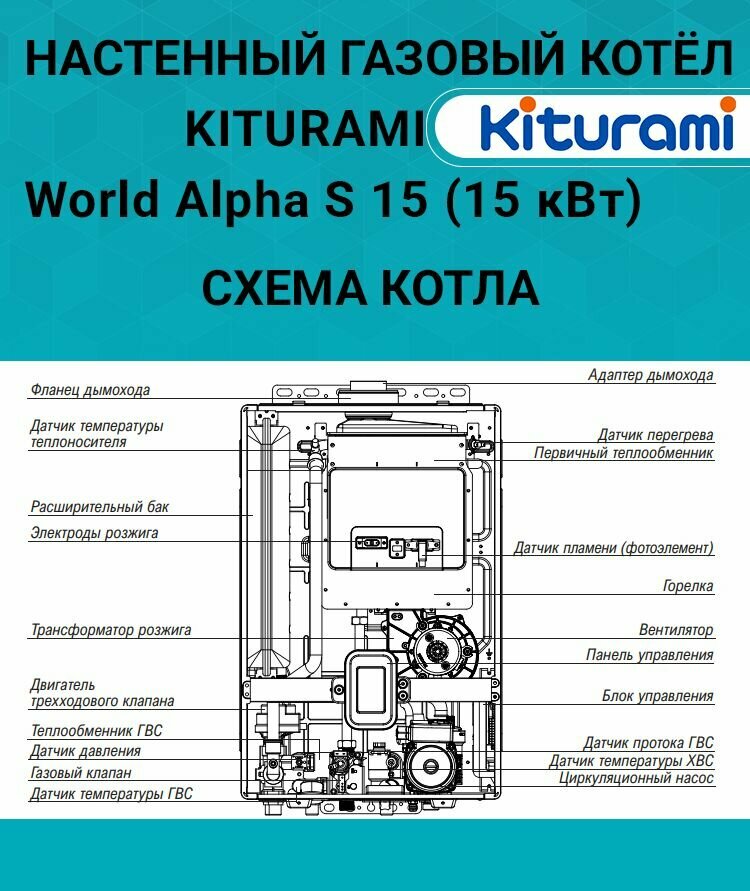 Котел газовый (15 кВт.) Kiturami World Alpha S-15 (Китурами) турбированный двухконтурный информация: