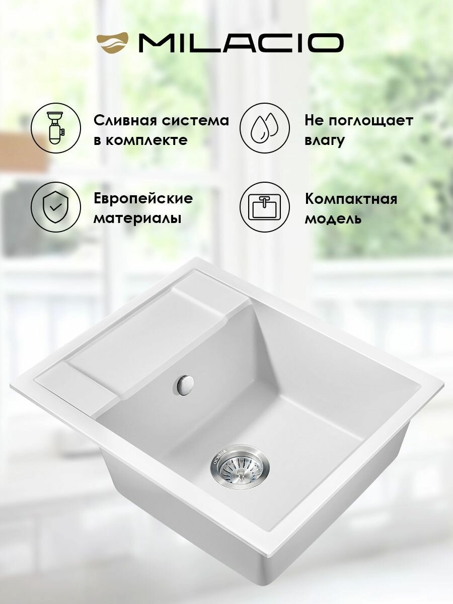 Мойка для кухни MILACIO Navarra 60 Cuarzo (MC.77072) белый 21 190 ₽
