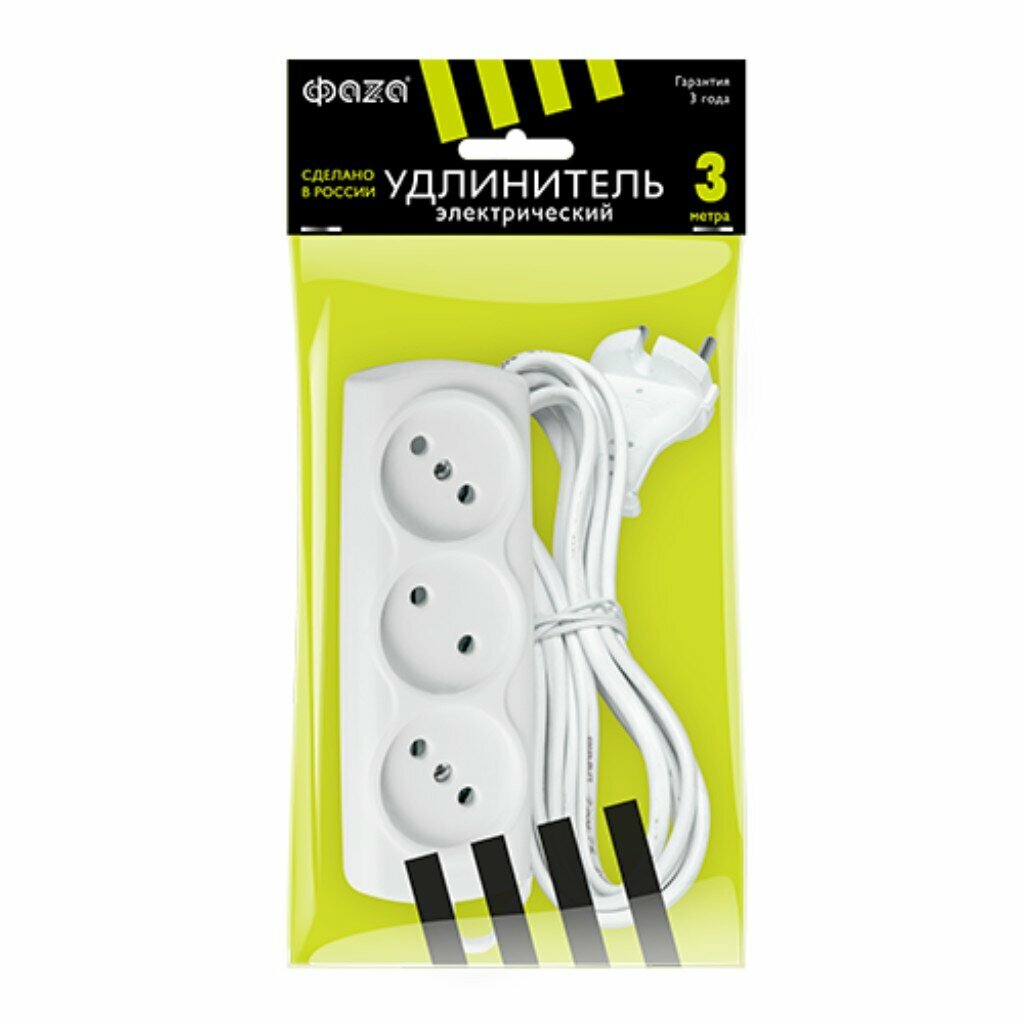 Отзывы на Удлинитель бытовой 3 гнезда, 3 м, 2х0.75 мм², без заземления, пластик, белый, ФАZА, УДП-3-300, 1043061