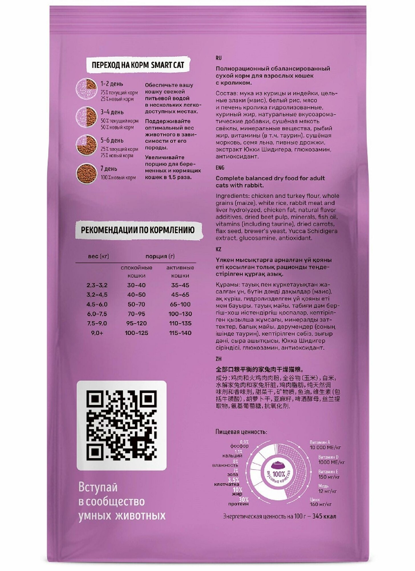 Отзывы на Smart Cat сухой корм Сухой корм для взрослых кошек с кроликом и овощами SAVOUR EXIGENT ADULT Rabbit and vegetables 0.400 кг 25429 (18 шт)