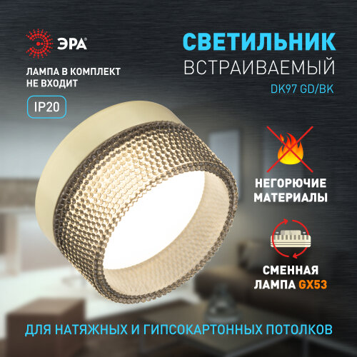 Отзывы на Встраиваемый светильник под лампу GX53 ЭРА DK97 GD/BK черный золото