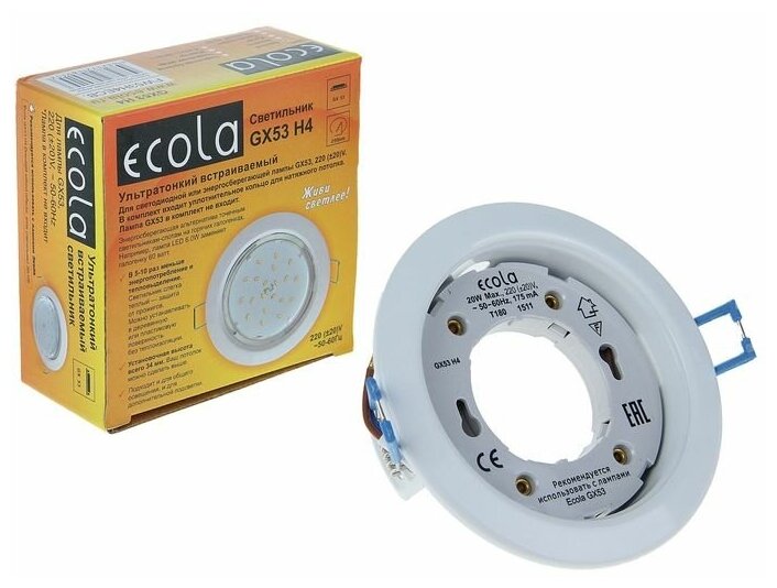 Светильник встраиваемый Ecola 5355, GX53, IP20, 220 В, 25×106 мм, круглый, белый 220 ₽