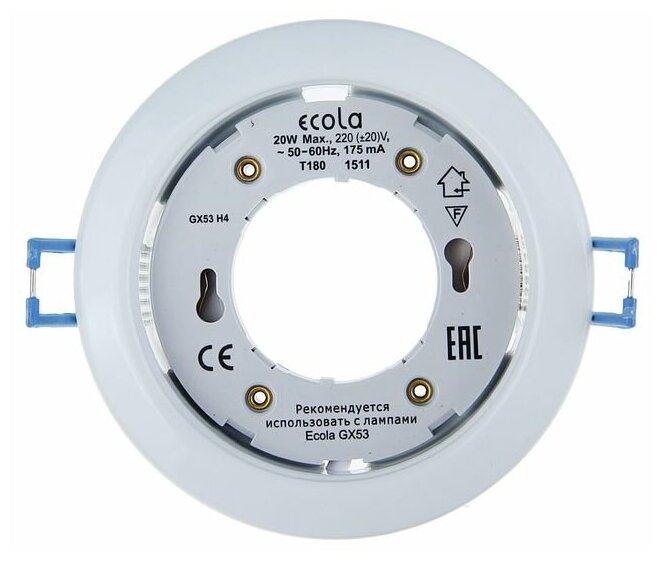 Светильник встраиваемый Ecola GX53 для ламп с цоколем GX53 макс. 20 Вт, цвет хром, размер 106x38, врезное отверстие 90 мм, термокольцо в комплекте, FC53H4ECB 295 ₽
