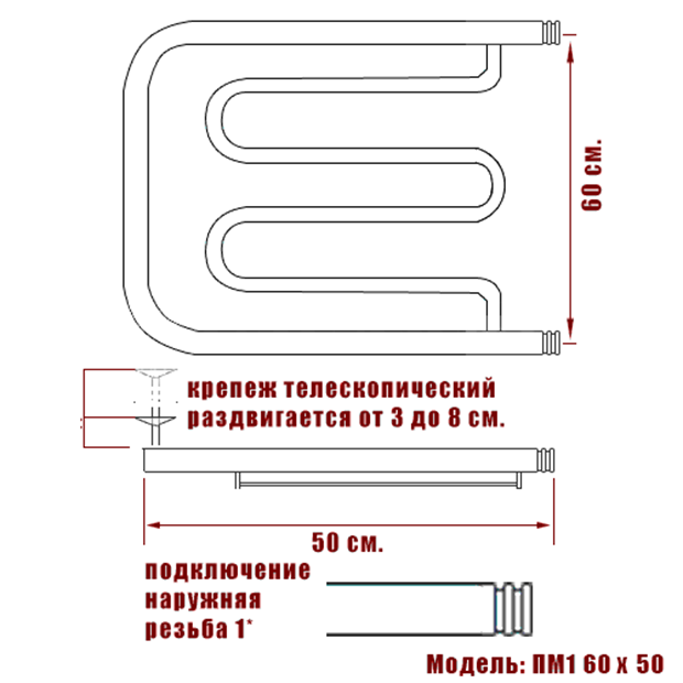 Водяной полотенцесушитель Ника ECON ПМ 60/50 с полкой информация: