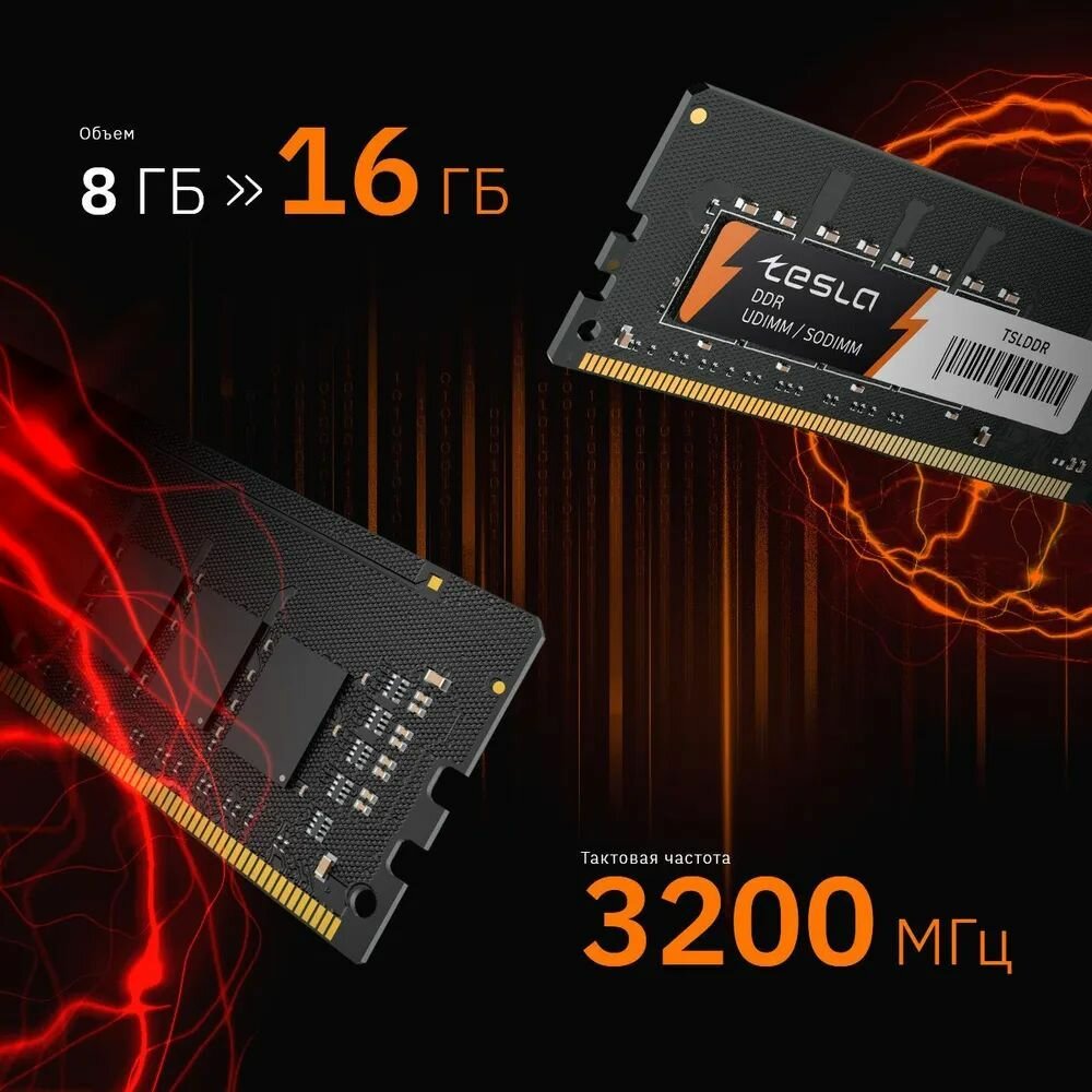 Память TESLA DDR4 DIMM 16Гб, 3200МГц, CL22, Retail 2 870 ₽