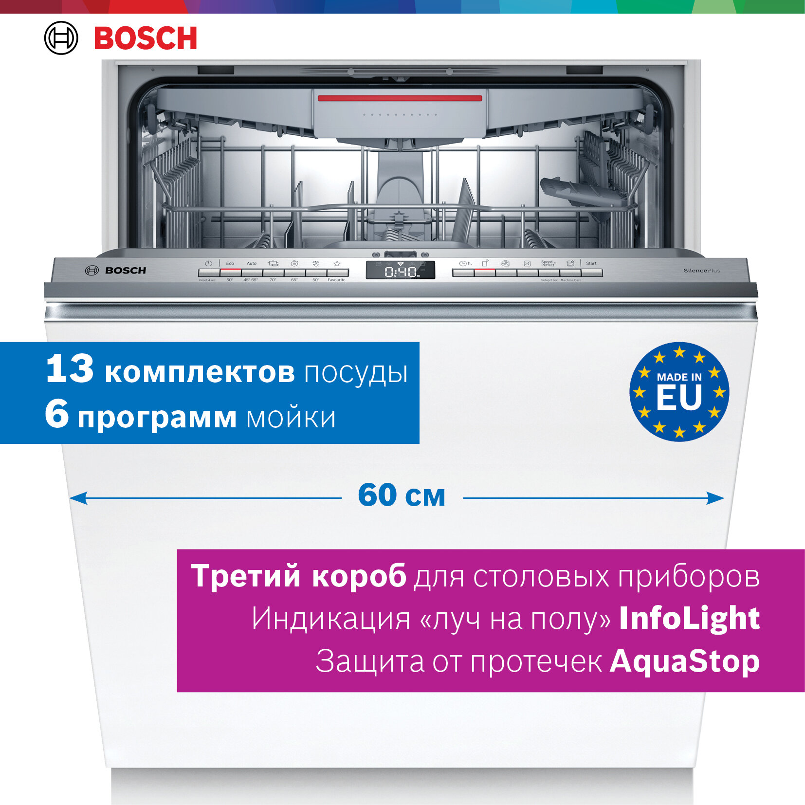 Встраиваемая посудомоечная машина Bosch SMV4EVX10E Serie 4, 13 комплектов, ExtraDry, 60 см информация: