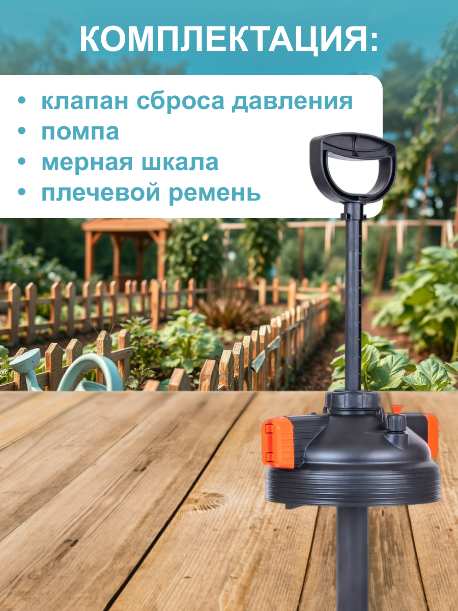 | Комплектация | Опрыскиватель Ремень Брандспойт Инструкция |