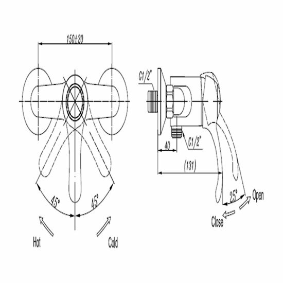 | Угол поворота рукоятки вертик. | 25 градусов |