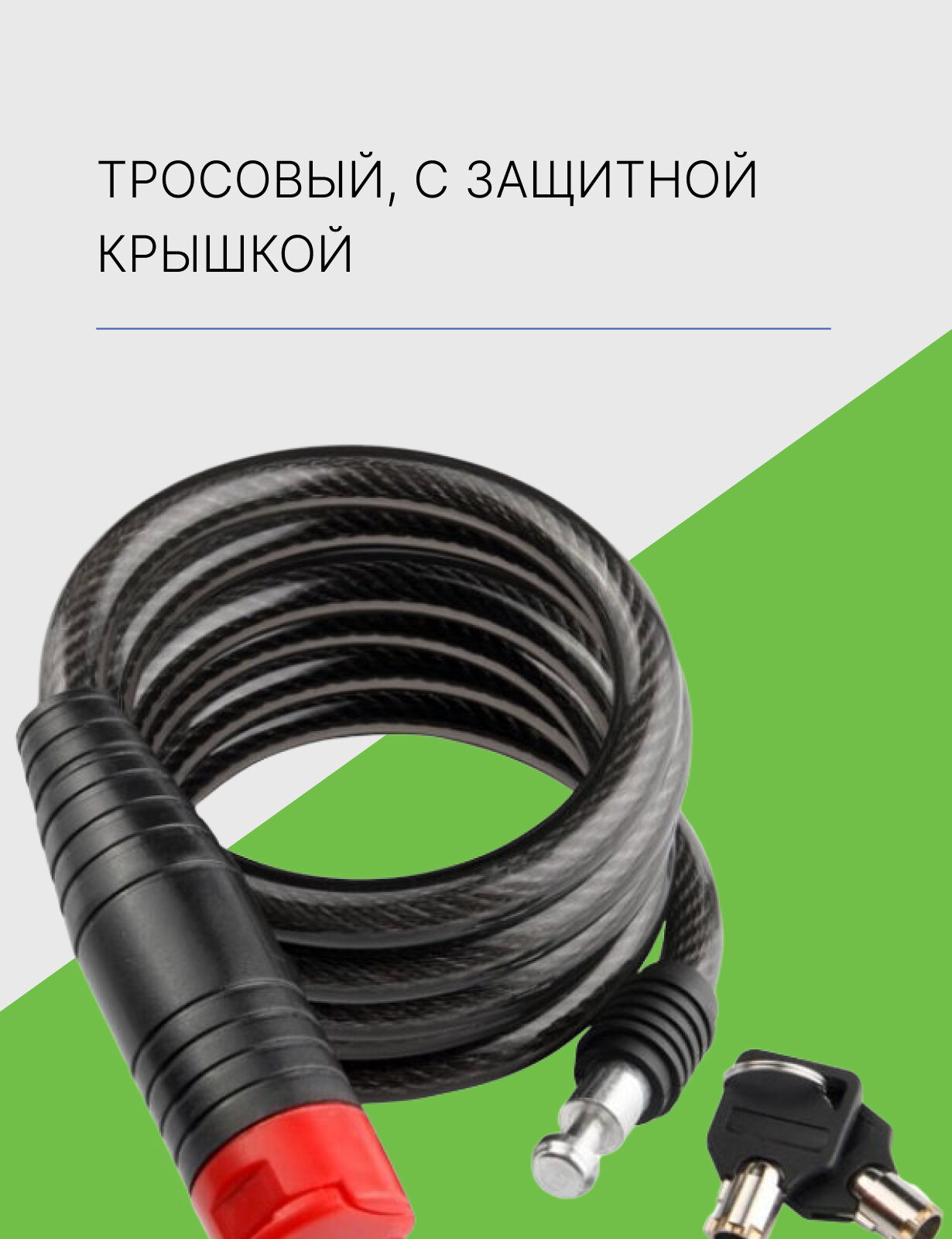 40052 Замок велосипедный тросовый с ключом, замок для коляски, для самоката BASARA B3-1000 MBP, 1000 мм