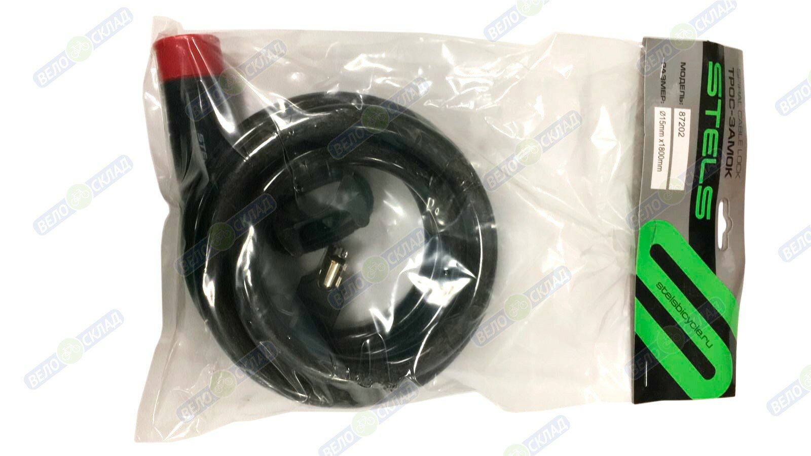 Stels Трос-замок 87202+HL032 (1800мм) диам. 12мм, цвет Черный информация: