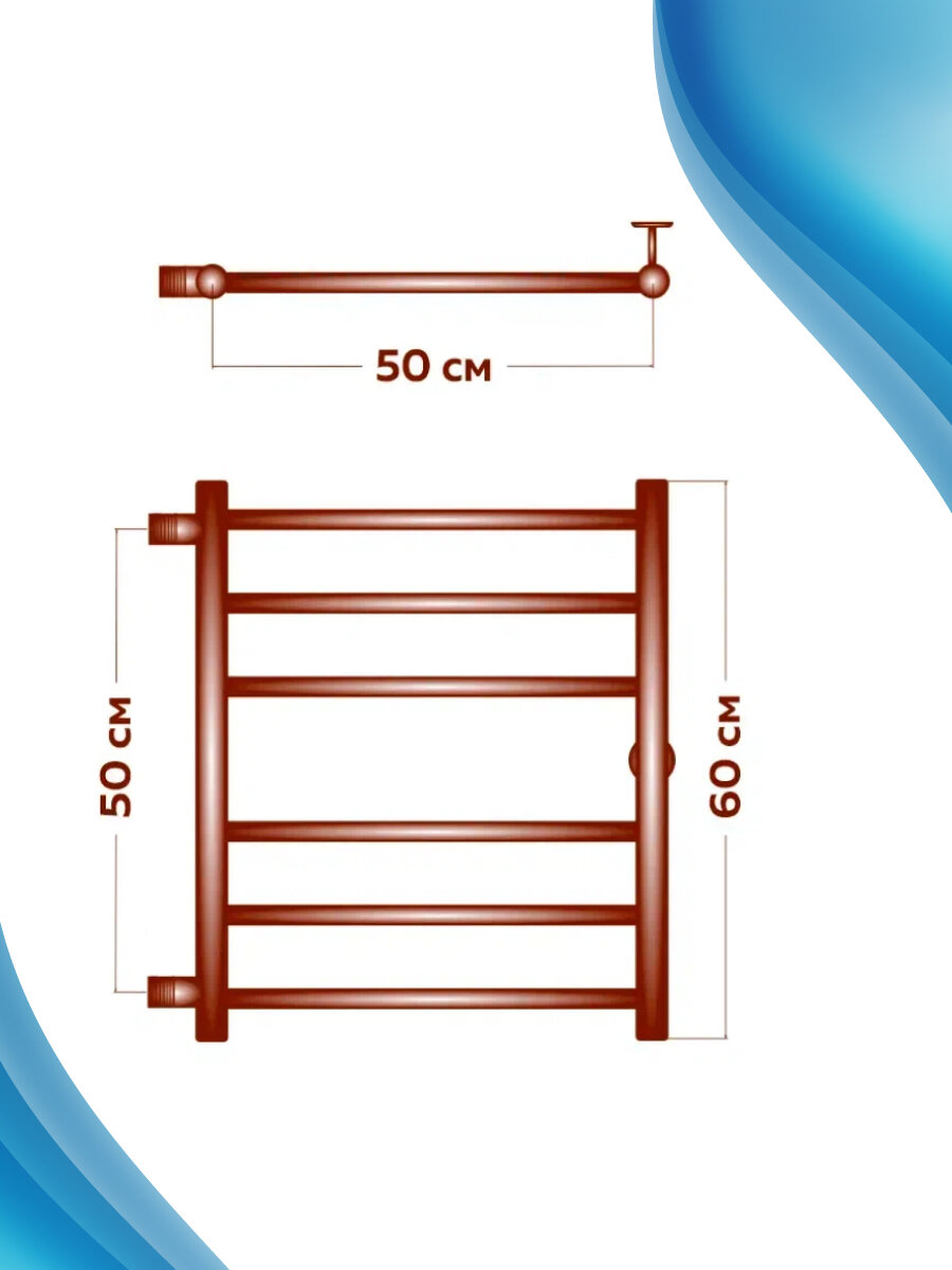 Полотенцесушитель водяной BAU В10 50х60, П6 (3+3), боковое подключение 50 хром информация: